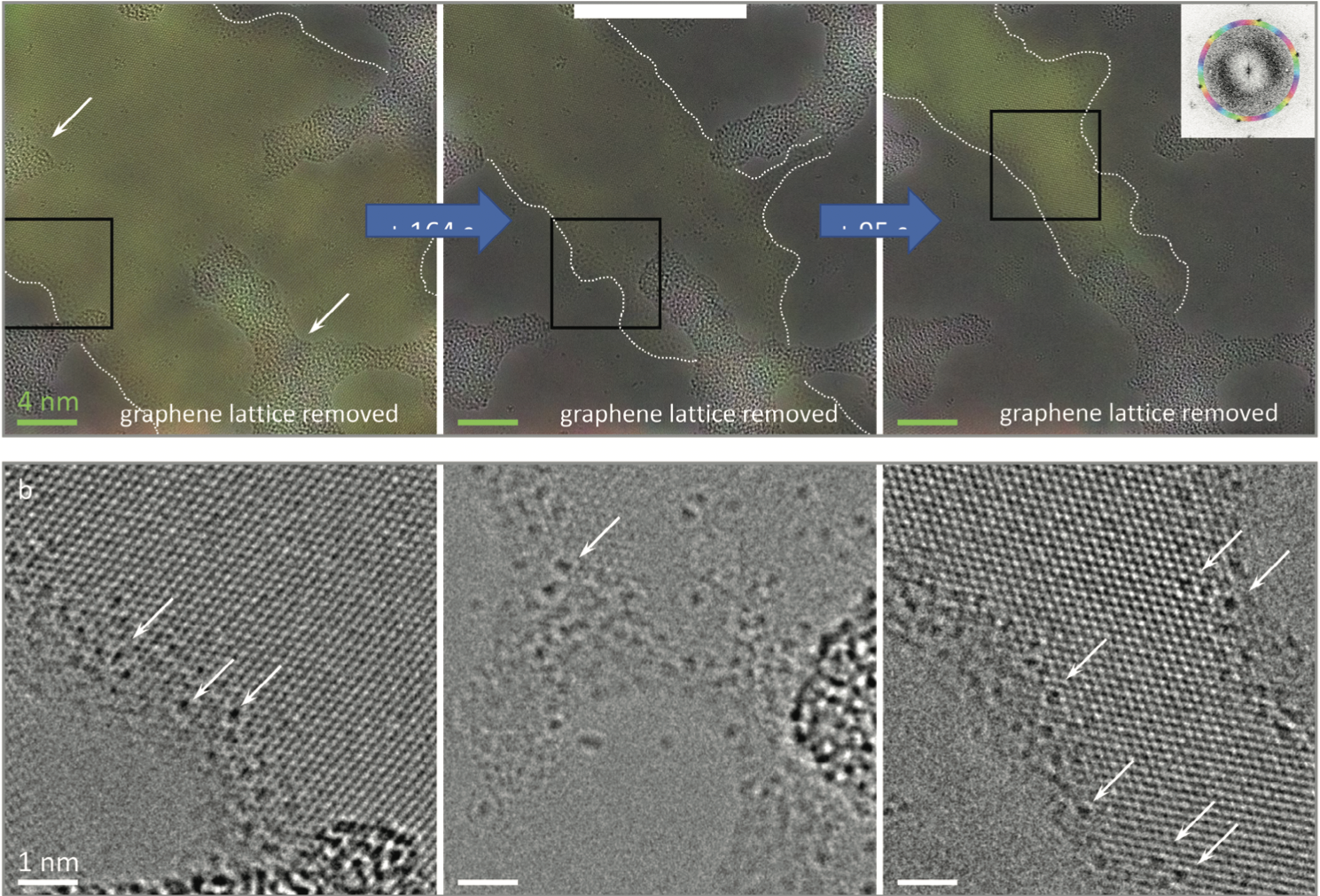 In this study, the authors extend previous work with a detailed TEM analysis supported by electron energy loss spectroscopy and density functional theory calculations. They focus on the role that atomic defects (such as carbon vacancies in graphene and foreign oxygen atoms in the growing lithium crystal) can play during the cycling between graphene layers. They observed how ultrathin lithium crystals form and grow, and how impurities inside the lithium crystal can affect the delithiation process. The resulting insights could be crucial for a deeper understanding of the role of defects during charging and discharging processes in LIBs.