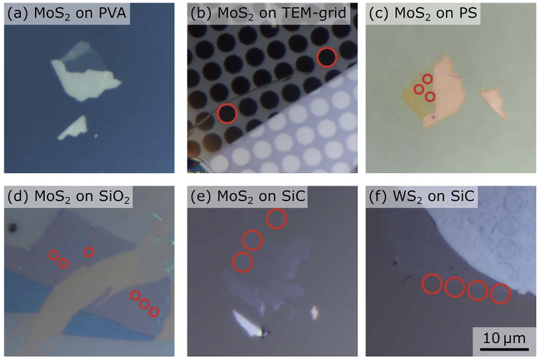 To bridge this gap, the research team employed a previously developed back-transfer technique[19] that allows electron-irradiated MoS2 and WS2 to be moved from TEM grids onto various substrates for subsequent optical characterization. This innovative approach makes it possible to correlate the defect density created by TEM irradiation of a freely suspended TMDC flake with optical spectra acquired from the same irradiated region after transfer onto polystyrene (PS), Si/SiO2, or SiC substrates.